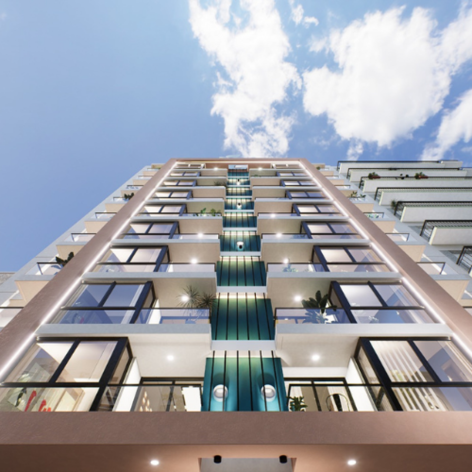 Se compone de 9 pisos residenciales mas planta baja con amenities: Piscina exterior de 19 m2, climatizada
